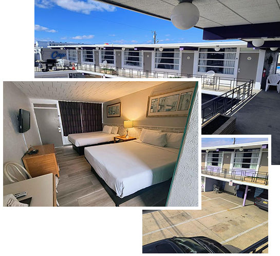 The Monaco Motel is just steps from Wildwood's Famous Beach and Boardwalk. Only one block to the Wildwood Convention Center, Doo Wop Museum, and the new home of the Vietnam Memorial. Conveniently located on Ocean Avenue. Close to restaurants, shopping, amusement piers & water parks. Minutes to tennis courts and bike rentals. Ideal for Family Vacations, Romantic Getaways, Special Event Weekends & Festivals.